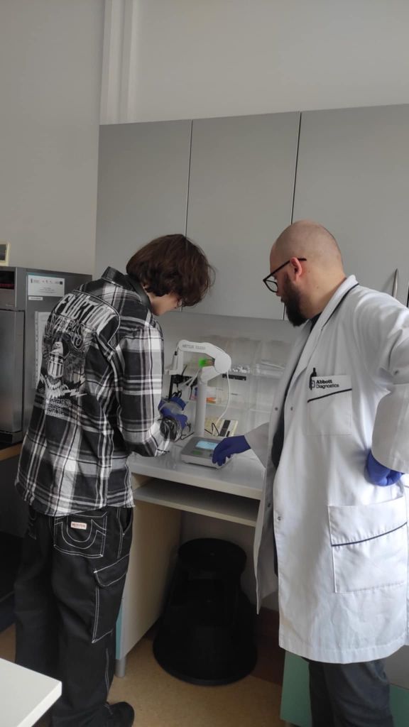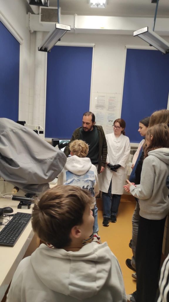 Największą atrakcją były warsztaty laboratoryjne. Uczniowie poznali tajniki pracy w laboratorium, zobaczyli profesjonalne wyposażenie, a nawet samodzielnie wykonali proste pomiary i oznaczenia, korzystając z prawdziwego sprzętu badawczego. Wycieczka miała również wymiar doradztwa zawodowego – młodzież mogła zajrzeć „od kuchni” w świat naukowców, odkrywając specyfikę ich pracy. Co więcej, zajęcia prowadzone w języku angielskim pozwoliły uczestnikom doskonalić kompetencje językowe w praktyce. To była nie tylko lekcja biologii, ale przede wszystkim fascynujące spotkanie z nauką, które z pewnością na długo pozostanie w pamięci uczestników! Bardzo dziękujemy panu dr hab. Arturowi Jóźwikowi za zorganizowanie ciekawych zajęć dla naszych uczniów.
